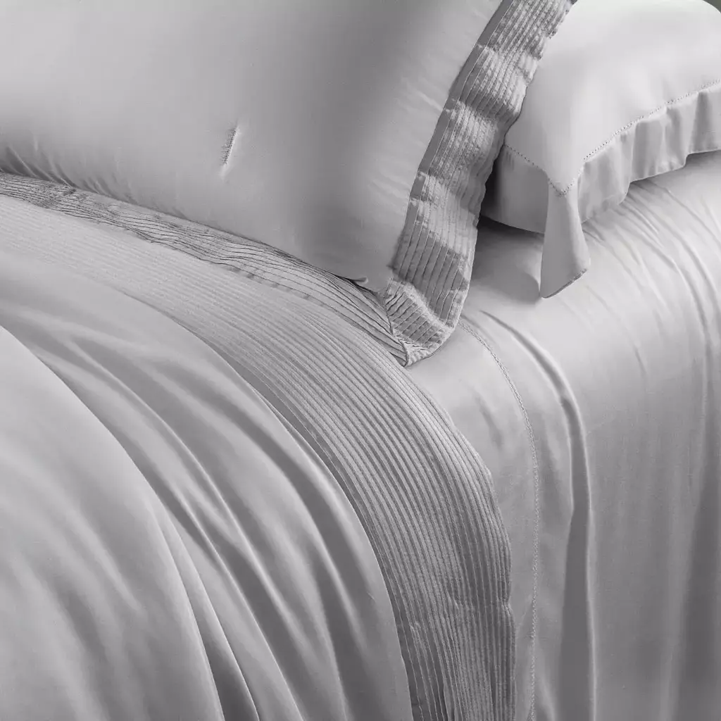 Confeccionada com fibra de bambu 400 fios percal, garantindo um inigualável toque de cetim, extremamente macio e confortável. Colcha com acabamento em aba preguiada.