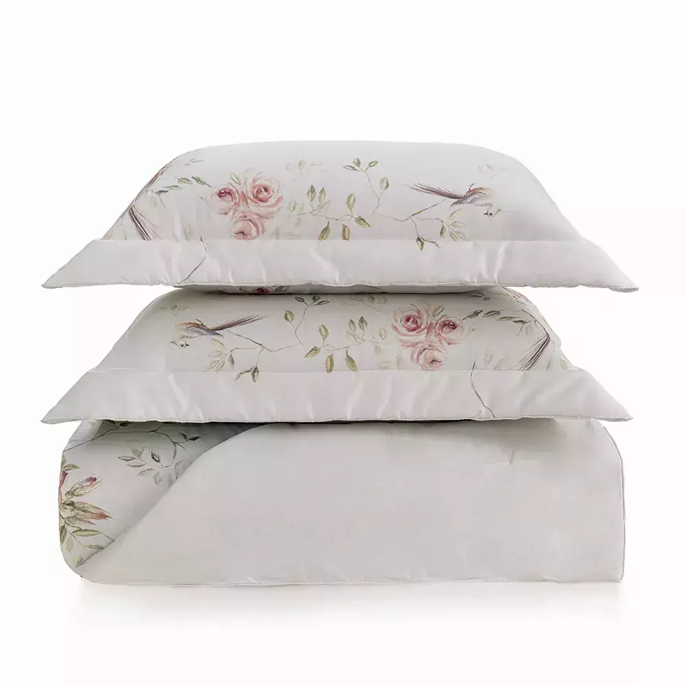 O Jogo de Colcha king Pavoniere traz a sofisticação atemporal da arte florentina para o seu ambiente. Inspirado nas rosas encantadoras do Jardim de Boboli e no primor do pavoniere, símbolo de beleza e orgulho, a estampa digital apresenta um deslumbrante equilíbrio entre a delicadeza floral e o pavão. Feito em cetim 300 fios, 100% algodão egípcio, o tecido sanforizado e mercerizado oferece um toque macio e luxuoso. As nuances suaves e harmoniosas das cores tornam o conjunto ainda mais acolhedor, com uma colcha de generosas dimensões 3,10 m x 2,80 m e porta-travesseiros de 50 cm x 70 cm, ambos com um belo verso estampado. Um verdadeiro refúgio de elegância e serenidade.