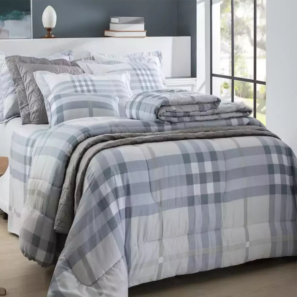 Confeccionado em percal 300 fios, 100% algodão egípcio, com toque de seda, naturalmente hipoalergênico, possui um tratamento anti-pilling, ou seja, evita a formação de bolinhas.