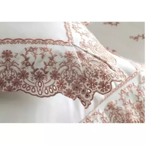 O Jogo de Cama Gianni é inspirado na arte de entrelaçar a criar rendas, como é conhecida a Ilha de Burano, em Veneza. Sua composição é Cetim 300 fios 100% Algodão Egípcio, possui tecido mercerizado e sanforizado. Seu lençol de baixo possui elástico, facilitando a troca e otimizando o tempo. Possui bordado aplicado, inclusive nas fronhas, que possuem o canto borboleta, seu bordado é minucioso, dando forma a flores e belos ornamentos, deixando assim sua cama delicada e sofisticada.